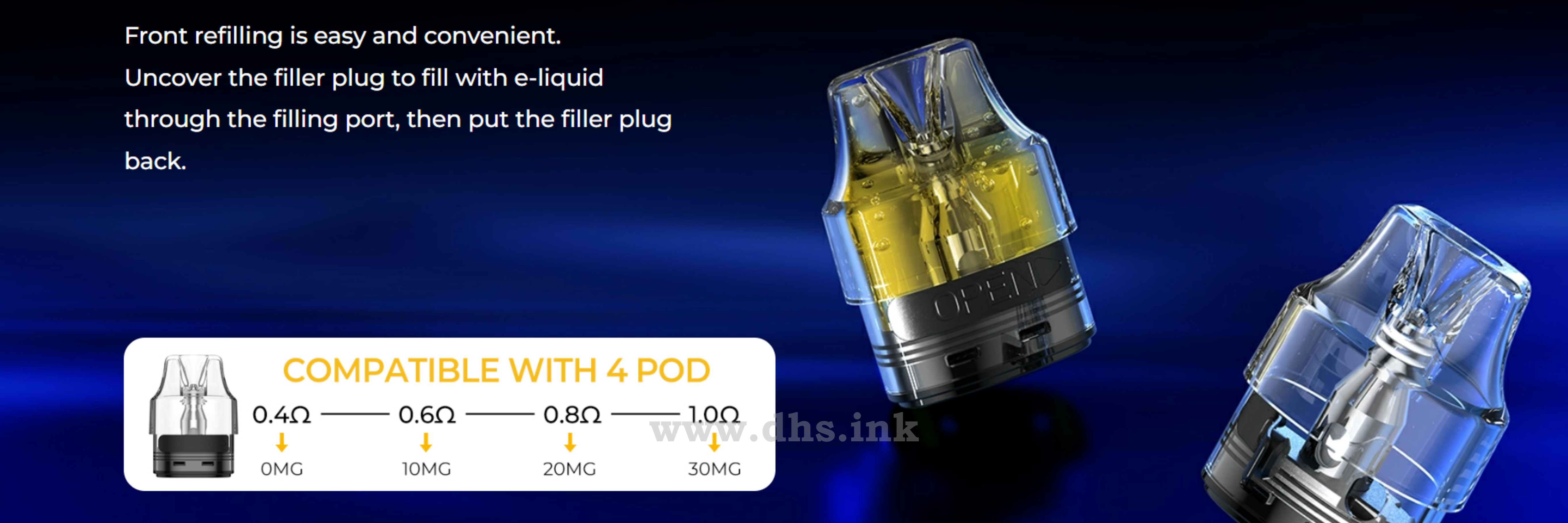 Для заправки рекомендується використовувати рідини на сольовому нікотині зі співвідношенням VG/PG 50/50. Це забезпечить комфортне паріння і знизить ризик протікання рідини.